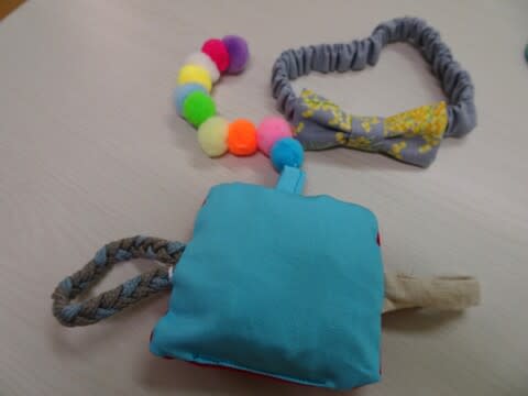 そして、6か月の孫には、以前作ったヘアバンドと、おもちゃ