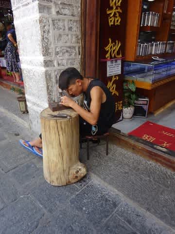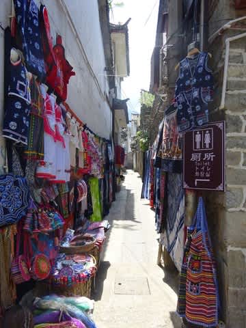 麗江と同じように商店が並んでいます。白族の人は住んでいるのでしょうか…。
