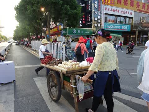 まだ小さいお子さんを連れた女性。子どもの手を弾いての行商はさぞかし大変かと…。