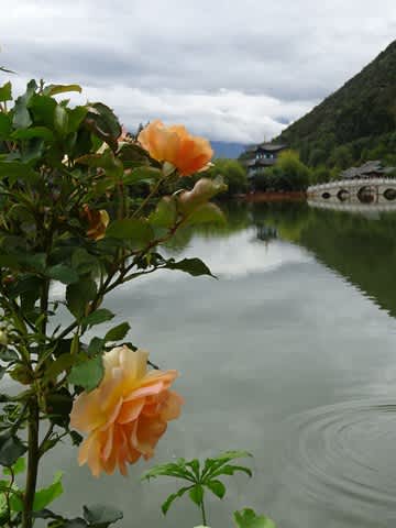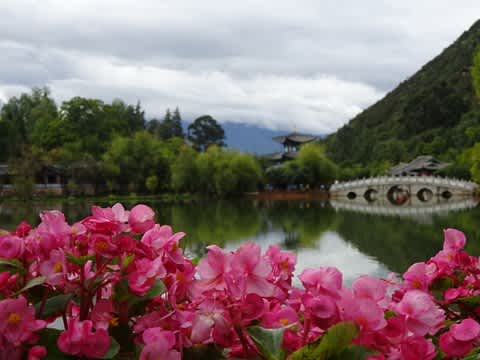 お天気が良ければ、池の向こうに玉龍雪山が見えるのですが。