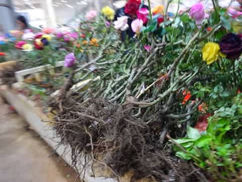 切花だけでなく、このように根っこの付いたものも。