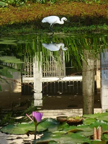 川面に映った鷺??が美しい