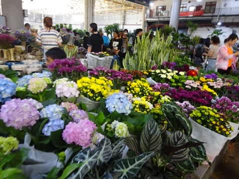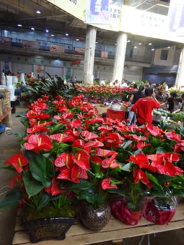 屋外にもハウスの並んだ市場があり、大きな建物の中も全て花関係のお店です。