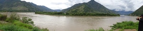 この虎跳峡は、揚子江(長江)の川幅が狭くて川の流れが勢いよく飛び出すさまが見どころなのです。
