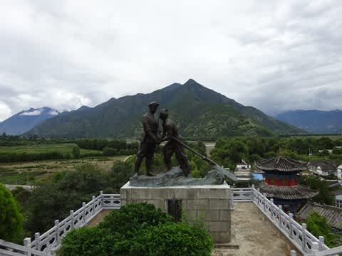 ここに住んでいたナシ族が、チベット族との戦いのため長征していた共産党を助けた記念碑と資料館らしいです。