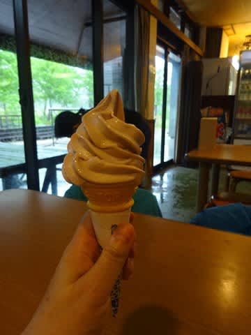 山の鼻で、ご褒美の花豆ソフトクリーム