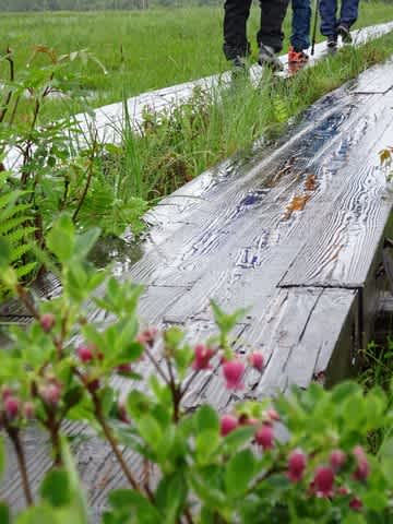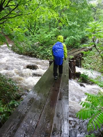 下りの木道では、前の日にOちゃん、Kさんが滑って転んでいたので、気を付けていたのですが。