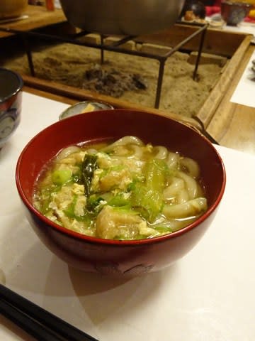 昨晩のきのこ鍋の残り汁で…といってもまだまだたくさんのきのこが入っています。