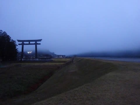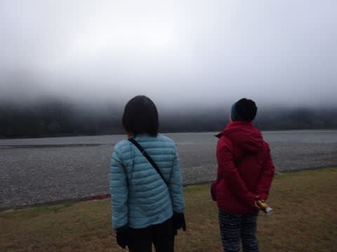 朝霧の中、まるで三途の川みたいだね~と話しながら、幻想的な景色を楽しみました。