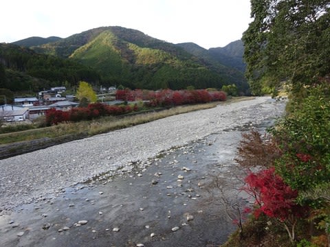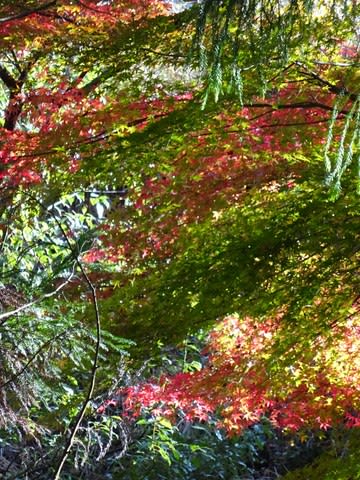 さらに下って、牛馬童子口のバス停が近づいてくると紅葉が増えます。