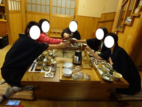 たまたま私達だけでのんびりお湯を楽しんで、宿に帰って、お待ちかねの夕食ー
