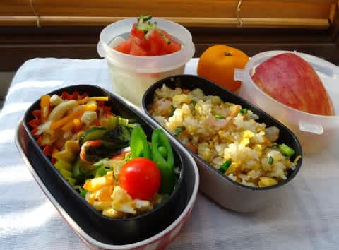 昨晩の残り物を詰め合わせて、あっという間にできちゃった。