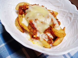 フライドポテトの上にチリコンカン・チーズを乗せて焼いただけ。