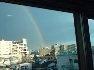 先週金曜日の会社帰りに、電車の中から見た虹。