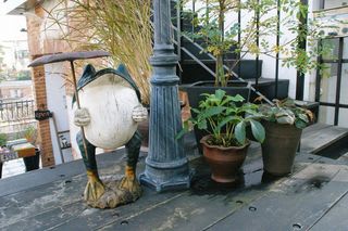 かわいいお店の入り口にいたかえるさん