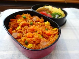 ご飯が少なかったので、冷凍ごはんでケチャップライス。