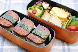 スパムおにぎりお弁当とミルクサブレ
