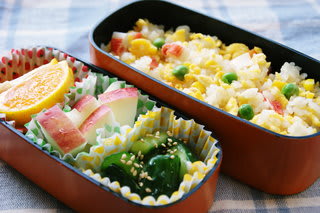 うふふ・・・彩りでごまかしてますが、ホントに手抜きのお弁当です。