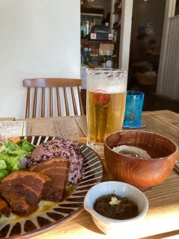 美味しいランチとオリオンビールで、早速古本屋さんで買ってきた本を読んでのんびり。