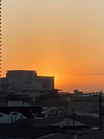 真っ赤に広がる空とお日さまに照らされてウォーキング。と…。