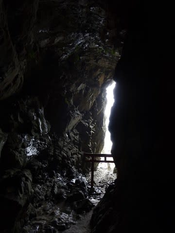 ここは、大昔、地下からマグマが流れ、隆起した岩に囲まれた神社です。