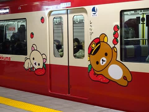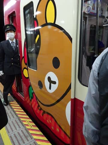 丁度、リラックマの電車がホームに滑り込んで来ましたー