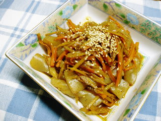 そういえば・・・これはきんぴらですねっ!今更気づきました。こんにゃくを韓国風に煮ようと考えて調理を始めたのですが、冷蔵庫を見たら牛蒡とにんじんがあったので、つい入れちゃいました。でも、言われるまできんぴらと言う感覚なかったです
