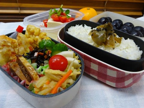 残り物をあれこれ詰めただけのやる気のないお弁当です。