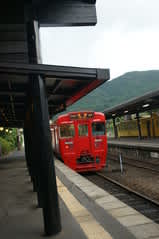 うまく画像取れなかったのだけど、大分から山をずっと登っていく、単線ディーゼル車。(・・・って日豊線も単線だったけど・・・)