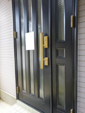 一軒のお宅のドアに何やら貼ってあります。