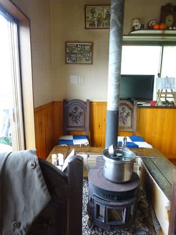こんなストーブのあるリビングダイニングキッチンで営むお蕎麦屋さん。