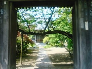 山門を横切る桜の木にびっくり!