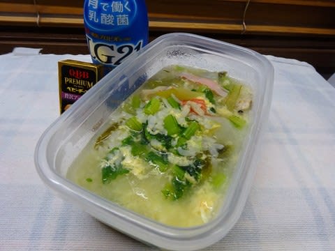 昨晩、豚しゃぶしゃぶにしたので、その残り汁で雑炊にしました。