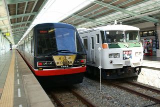 隣の電車は下田龍馬伝を記念しての伊豆急行の車両のようです。