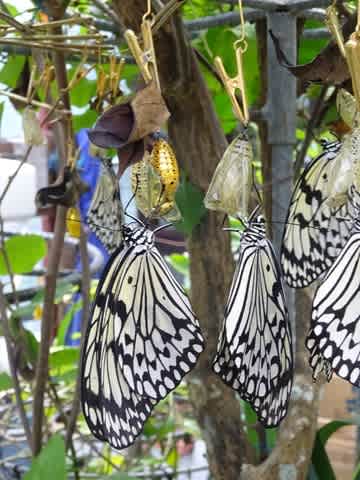 さなぎなんですよ。びっくりでしょう?ちょうど羽化した蝶たちがぶら下がっていました。