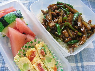 でも、お弁当箱が変ったことで、私の思いつきも丼物弁当と。