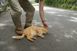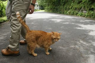 博物館を出てふと見ると、シオカラトンボと人なっつこい猫ちゃん