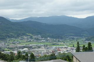 高台にあるお蕎麦屋さんからの眺め。湯布院の町が一望できます。