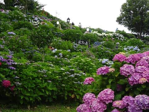私達の方が早く着いたので、先に丘の紫陽花たちを堪能します。