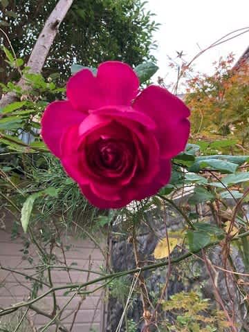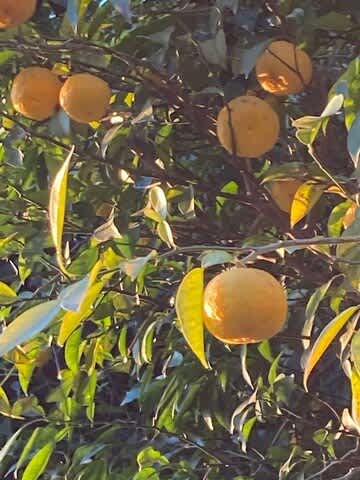 秋の薔薇と、朝日に撮らされたミカン。そして、