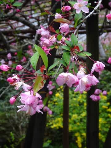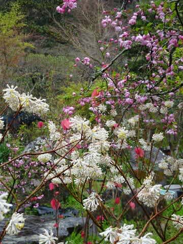 門前は桜で覆い尽くされていて、中のお庭にもいろいろなお花たち。