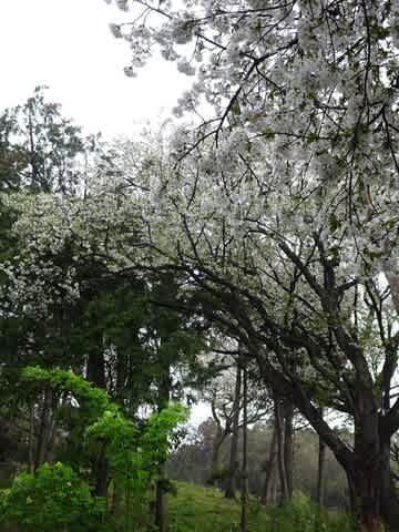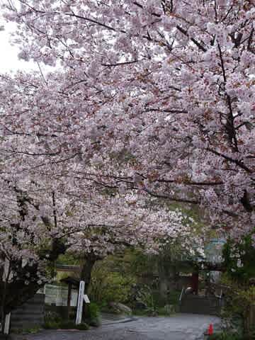 これは樹齢600年の桜の大木なんですよ。桜のお花満開なのに、あいにくのお天気で悲しい