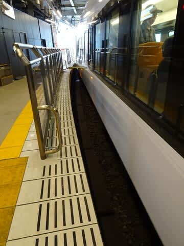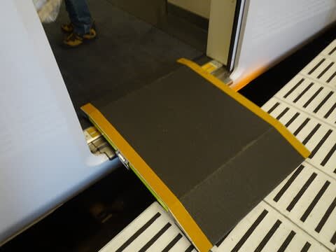先頭車両に乗るには、このような渡し板が必要なほど。