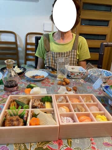 娘が母のところにお祝いのお重を贈るというので、それをつまみに夕食をと、
