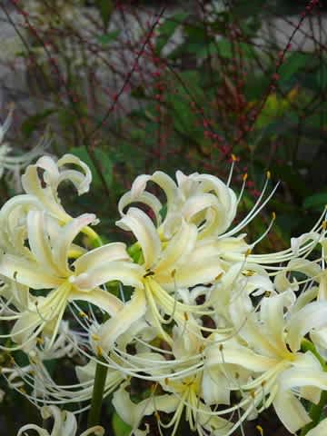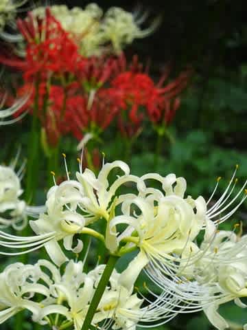 白い曼珠沙華。赤とのコントラストがいいですね!