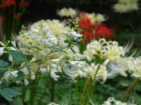 わかりますか?白い萩がバックの曼珠沙華に埋もれています