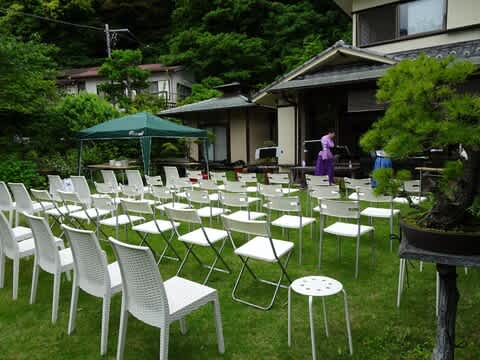 貸きりの邸宅とお庭です。ちょうど演奏会が開かれる様子。