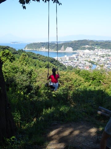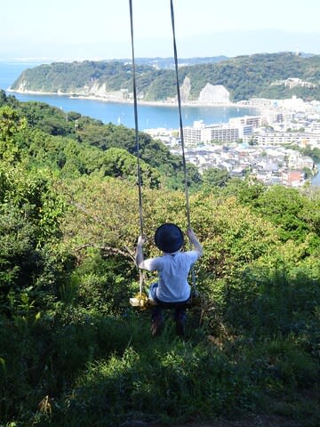 このブランコ、海に向かって漕ぐからとっても気持ちが良いんですよ。