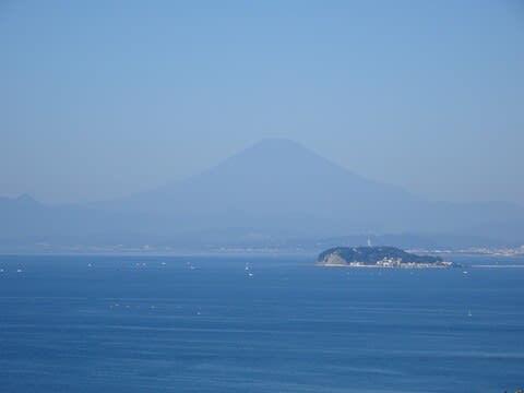 うっすらですが、富士山と手前に江の島です。
