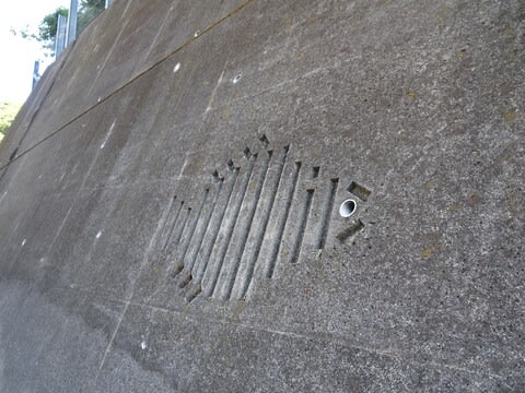 山を降りて住宅街を歩いて、楽しいコンクリートのお魚さんを見たり